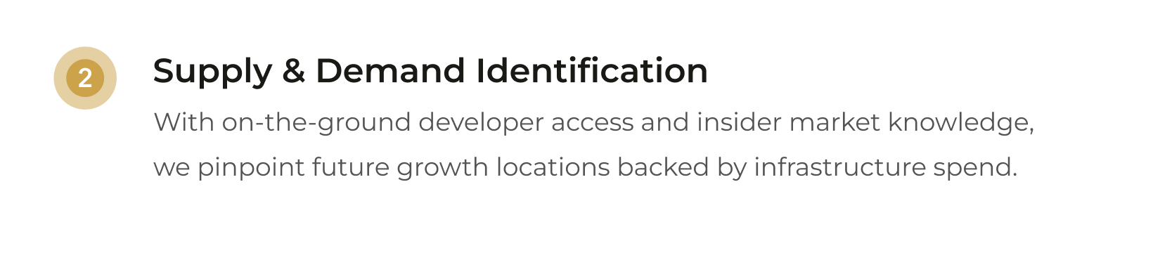 With on-the-ground developer access and insider market knowledge, we pinpoint future growth locations backed by infrastructure spend.