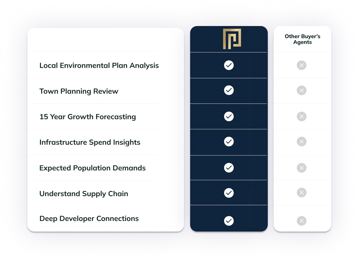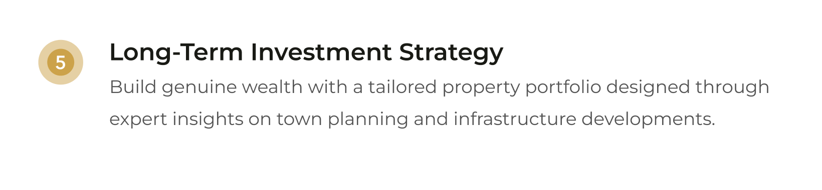 Build genuine wealth with a tailored property portfolio designed through expert insights on town planning and infrastructure developments.
